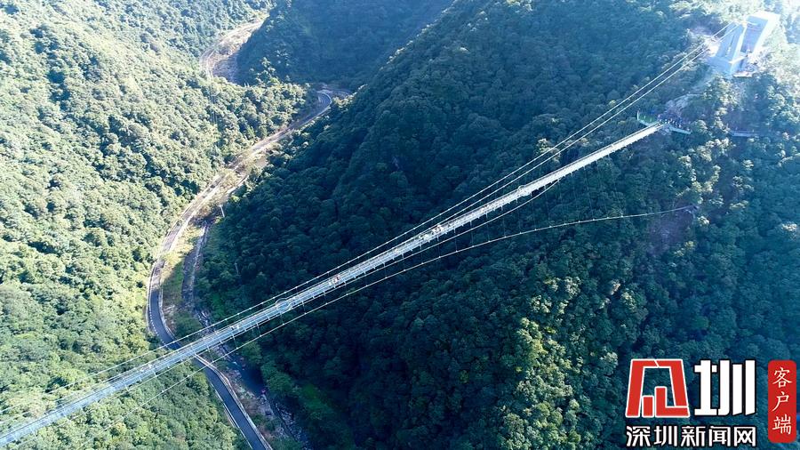 2019年8月24日,說到“玻璃天橋”,恐高的人雙腳發(fā)抖,膽大的人躍躍欲試,在國內(nèi)的湖南張家界、福建三明尤溪、河南嵩山三皇寨等地,已經(jīng)出現(xiàn)了不少與自然景觀、人文歷史融為一體的玻璃天橋,讓游客們大呼過癮?,F(xiàn)在,浙江臺州人可以就近去三門過一把“行走在云端”的癮了。今年夏天,全長419米、垂直高度199米玻璃景觀懸索橋,出現(xiàn)在臺州三門潘家小鎮(zhèn)情人谷,刺激程度絕不亞于張家界玻璃橋。這座橋橫跨牛郎峰、織女峰之間,可將潘家小鎮(zhèn)的美麗風(fēng)景盡收眼底。圖為航拍玻璃天橋。