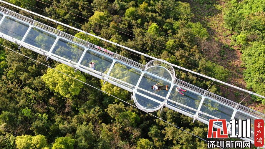 2019年4月24日,湖南張家界大峽谷玻璃橋上,游客們擺出各種姿勢拍照。剛開始,游客們在短暫的恐懼之后,隨之而來的是滿滿的興奮,男女老少紛紛在這座懸在300多米高空中的全透明玻璃橋上不停拍照,從一開始走上橋緊張的不敢踩在玻璃上,到最后在玻璃橋上的各種躺和趴,各種姿勢各種創(chuàng)意各種拍攝,游客們完全忘我地開心游玩。張家界大峽谷玻璃橋,是世界首座斜拉式高山峽谷玻璃橋,玻璃橋全長430米,寬6米,橋身距離谷底垂直落差300米,大橋表面由99塊透明玻璃鋪設(shè)而成,整個(gè)工程無鋼筋混凝土橋墩。