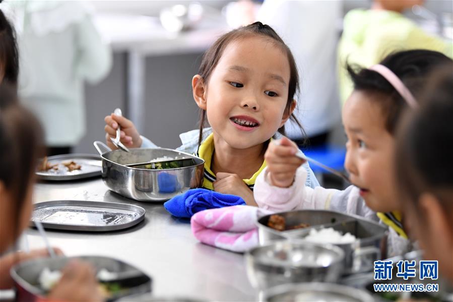 9月3日,金寨縣希望小學學生在吃午餐。新華社記者張端攝