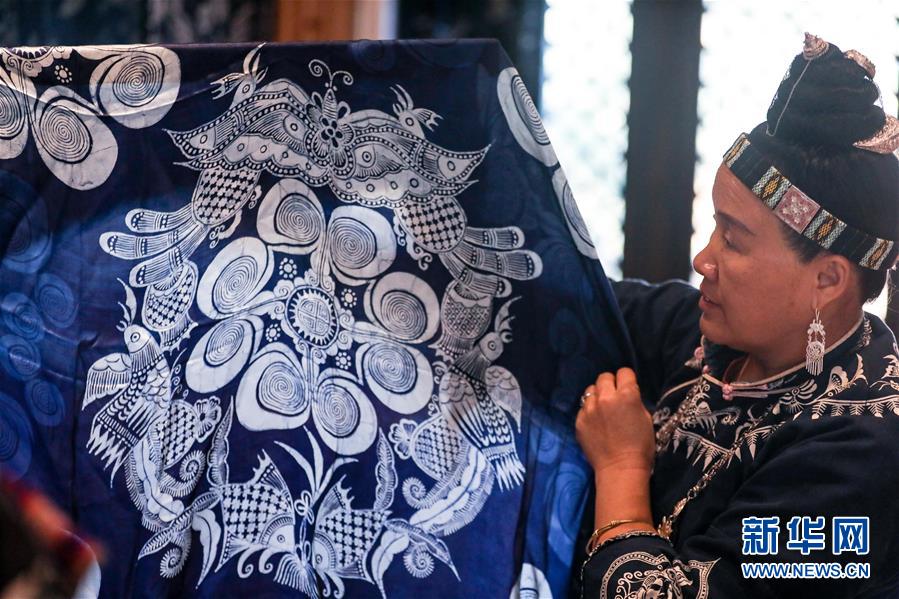 10月28日,楊芳在家中晾曬蠟染制品。新華社記者 歐東衢 攝
