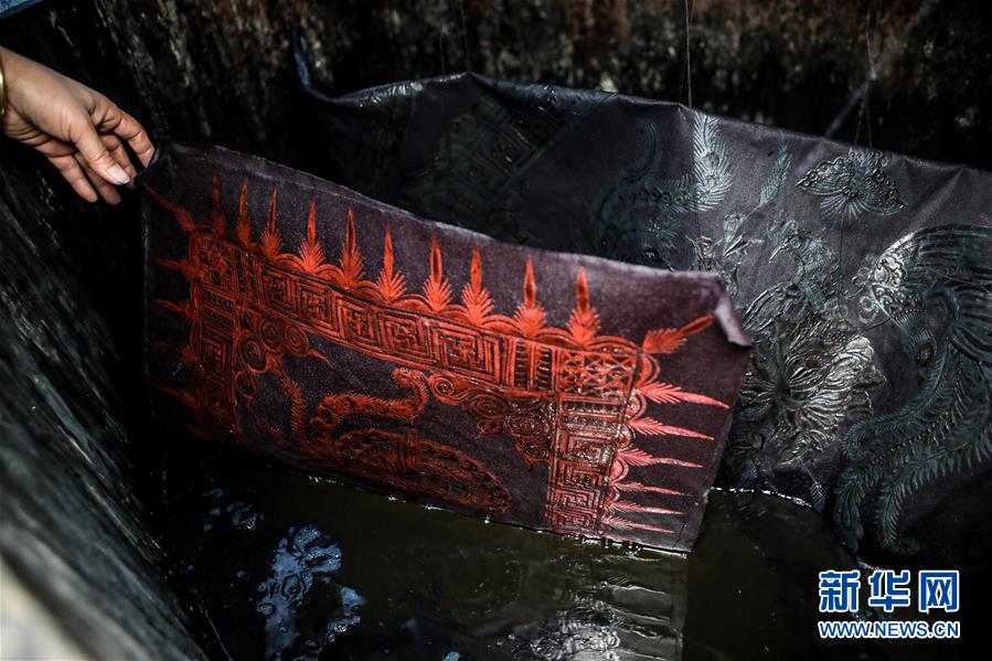 10月28日,楊芳在家中對(duì)繪好的蠟畫進(jìn)行染制。新華社記者 歐東衢 攝