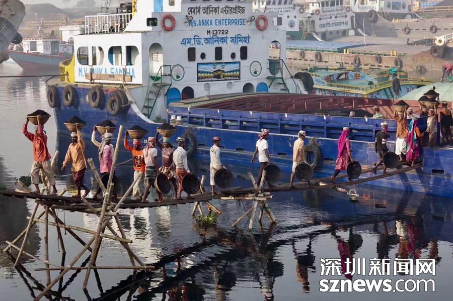 碼頭勞工裝卸作業(yè)的場面很震撼,令人慨嘆人生的艱辛。李仁奇攝