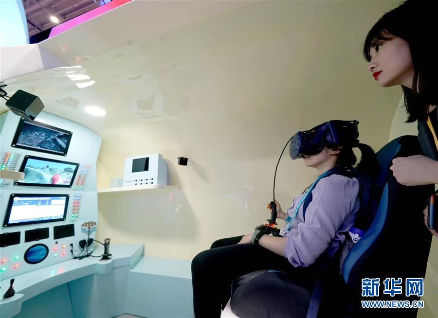 11月5日,觀眾在第二屆進(jìn)博會中國館“深海勇士”體驗倉內(nèi)體驗。新華社記者陳建力攝