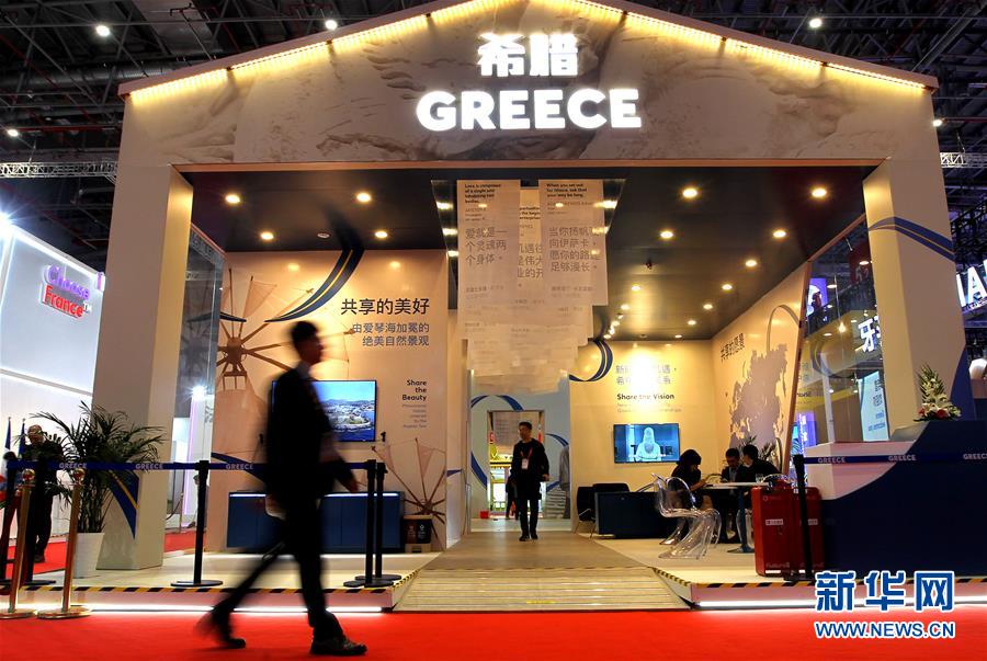 11月5日,參觀者走過(guò)希臘國(guó)家館。新華社記者陳飛攝