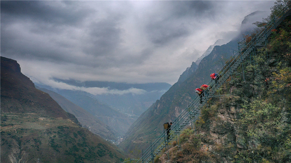 2019年11月16日,四川涼山,背著快遞包裹回家,成為懸崖村天梯上的新風(fēng)景。