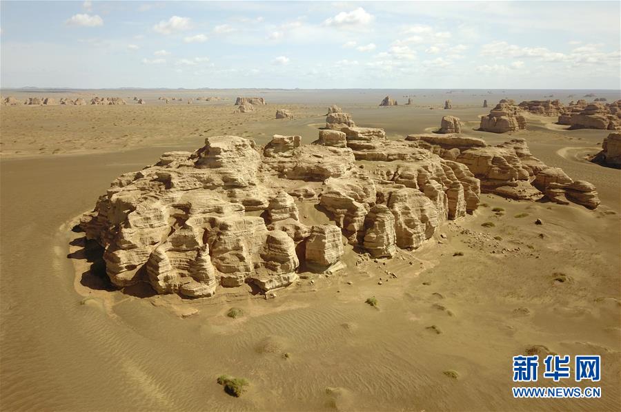 這是5月8日無人機(jī)拍攝的敦煌雅丹國家地質(zhì)公園雨后景色。新華社記者范培珅攝