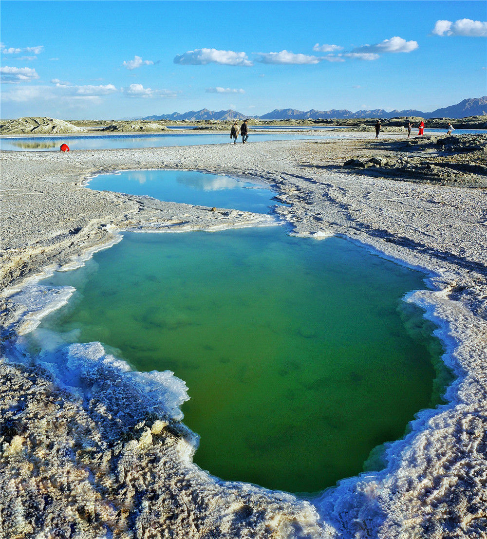 2017年8月,青海西寧,翡翠湖隨著日光的不同,出現(xiàn)了不同是顏色。