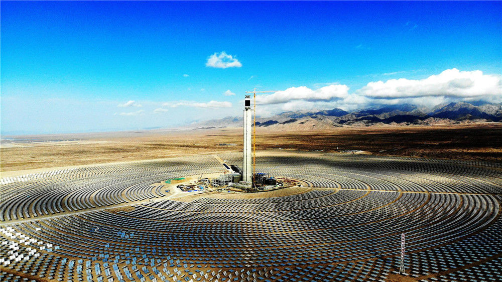 2018年10月13日,地處青海省海西州德令哈市的中控太陽(yáng)能發(fā)電有限公司10兆瓦塔式熔鹽光熱電站。位于中國(guó)西部的青海省,有“三江源”“中華水塔”之稱(chēng)。如今,青海清潔能源正在從“風(fēng)生水起”走向“風(fēng)光無(wú)限”。青海太陽(yáng)能資源約占中國(guó)的11%,光熱資源平均年輻射總量可達(dá)每平方米5860—7400兆焦耳,僅次于西藏;同時(shí),該省可用于新能源開(kāi)發(fā)的荒漠土地面積約10萬(wàn)平方公里,裝機(jī)規(guī)??蛇_(dá)35億千瓦,折合年發(fā)電量約5.6萬(wàn)億千瓦時(shí),是三峽電站年發(fā)電量的56倍。