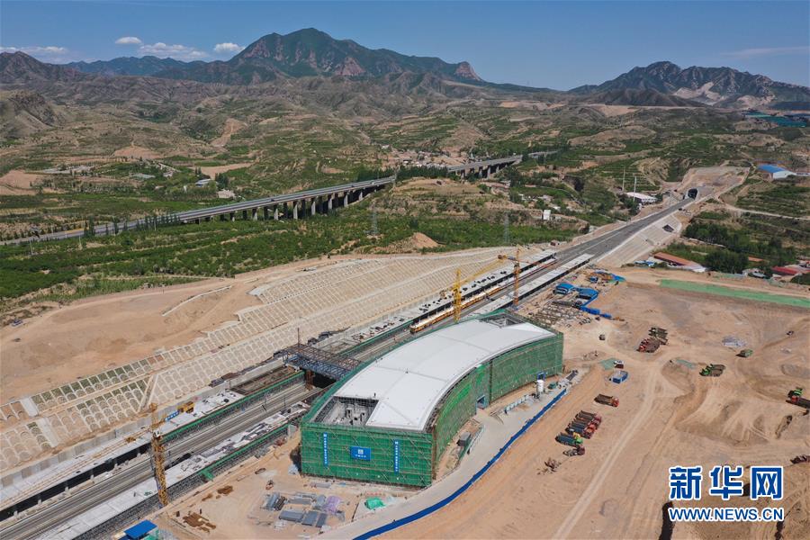5月28日無人機拍攝的建設中的京張高鐵懷來站。新華社記者邢廣利攝