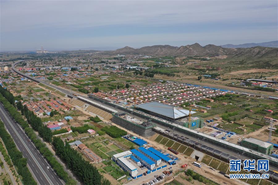 建設(shè)中的宣化北站(5月30日無(wú)人機(jī)拍攝)。京張高鐵宣化北站位于河北省張家口市宣化區(qū)北盆兒窯村附近,京張高鐵線路北側(cè),目前該站已完成站房主體結(jié)構(gòu)、鋼結(jié)構(gòu)、金屬屋面、清水混凝土雨棚結(jié)構(gòu)等施工內(nèi)容,全面進(jìn)入裝飾裝修施工階段。新華社記者邢廣利攝