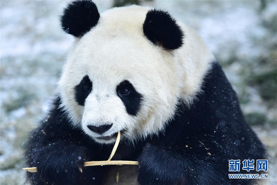 11月29日,在西寧熊貓館內(nèi),一只大熊貓在吃竹子。 新華社記者 吳剛 攝