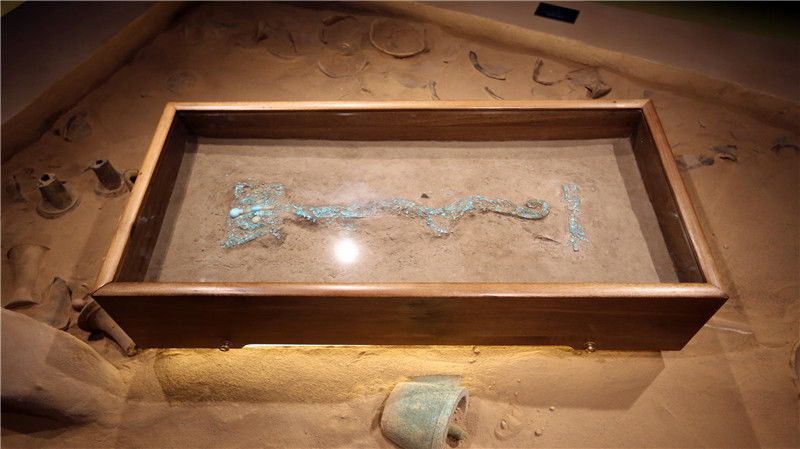 2019年10月19日,河南洛陽,二里頭夏都遺址博物館。“七孔玉刀”是二里頭夏都遺址出土的最大的玉器。