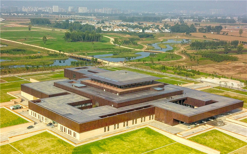 2019年10月19日,展示中國最早王朝——夏朝中晚期都城遺存的二里頭夏都遺址博物館在河南洛陽開館。圖為博物館外景。孫自法(政文部)/中新社/視覺中國編輯/陳進(jìn)