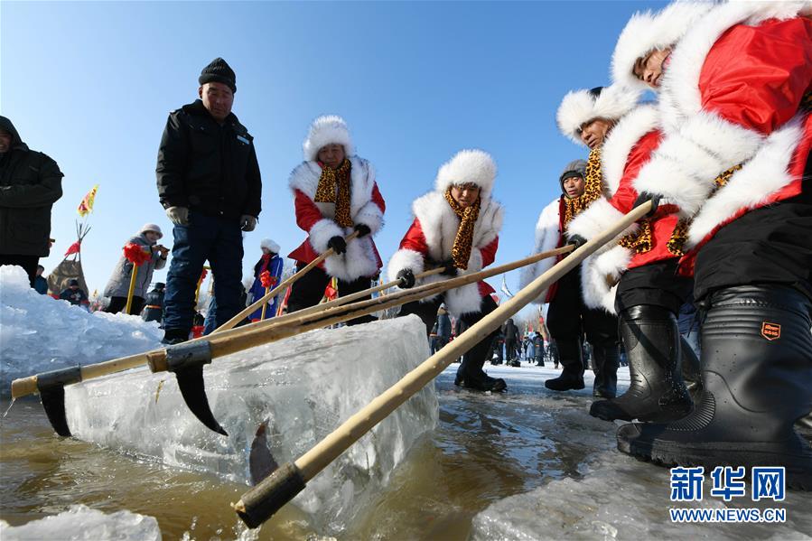 12月7日,人們在采冰節(jié)現(xiàn)場采“頭冰”。當(dāng)日,哈爾濱采冰節(jié)在冰封雪覆的松花江哈爾濱段江面上開幕,精彩的采冰儀式和表演吸引了眾多冰城市民和游客前來欣賞、互動(dòng)。新華社記者王建威攝