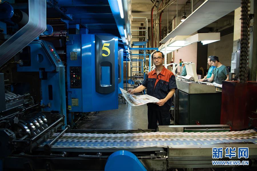 11月27日,澳門(mén)日?qǐng)?bào)印刷課副主任袁錦財(cái)在車(chē)間內(nèi),他已經(jīng)工作了35年,主要負(fù)責(zé)抽樣質(zhì)檢當(dāng)日?qǐng)?bào)紙。 澳門(mén)回歸祖國(guó)二十年,經(jīng)濟(jì)繁榮昌盛,社會(huì)面貌生機(jī)勃勃。這二十年的輝煌成就,離不開(kāi)各行各業(yè)普通勞動(dòng)者的辛勤付出。他們默默無(wú)聞,日復(fù)一日用汗水與堅(jiān)守為澳門(mén)社會(huì)貢獻(xiàn)自己的力量。   新華社記者 張金加 攝