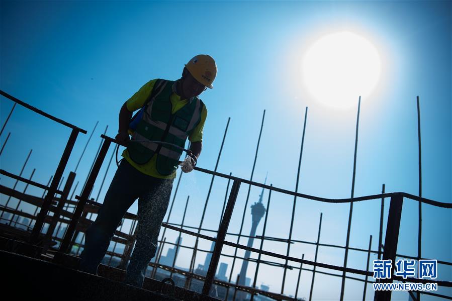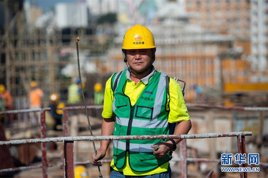 11月22日,澳門(mén)工地工人何錦在工地上,他已經(jīng)工作了25年,主要負(fù)責(zé)處理工地事項(xiàng)。  新華社記者 張金加 攝