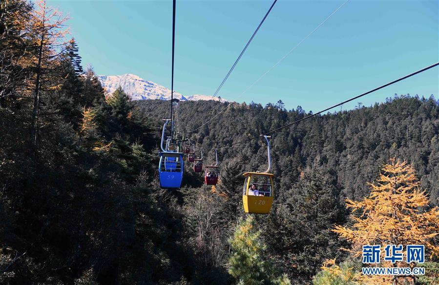 11月10日,游客乘坐纜車觀賞麗江玉龍雪山風(fēng)光。新華社記者楊宗友攝