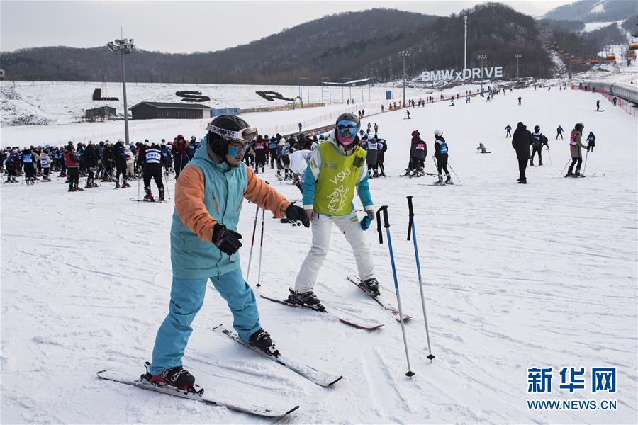 12月13日,滑雪愛好者在吉林市萬科松花湖度假區(qū)做滑雪前的熱身。新華社記者 張豪夫 攝