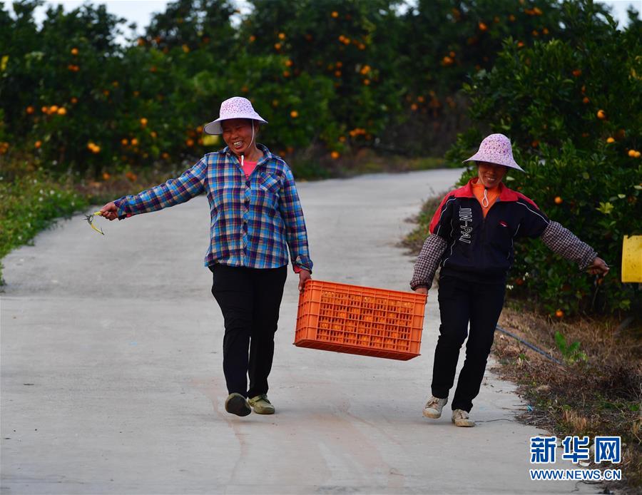 12月11日,廣西柳州市鹿寨縣四排鎮(zhèn)四排村村民在果園里挑運砂糖橘。新華社記者 黃孝邦 攝
