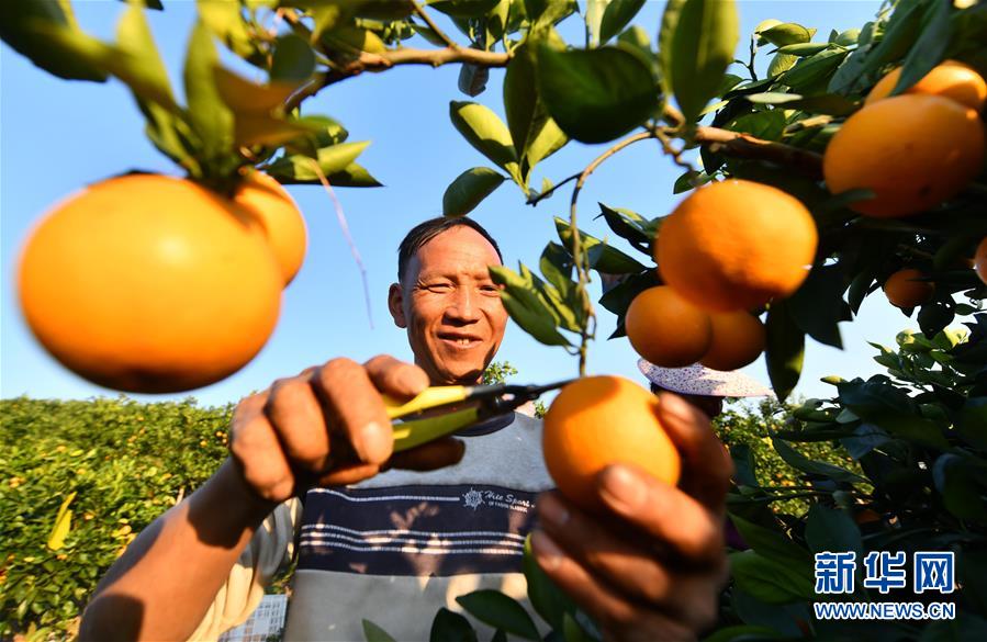 12月11日,廣西柳州市鹿寨縣四排鎮(zhèn)四排村村民徐金勝在果園里采收砂糖橘。新華社記者 黃孝邦 攝