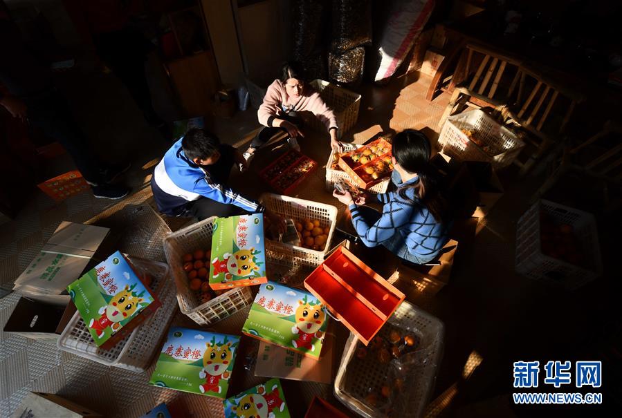 12月13日,廣西柳州市鹿寨縣一家土特產(chǎn)銷售公司員工在包裝蜜橙,準備通過電商銷售。新華社記者 黃孝邦 攝