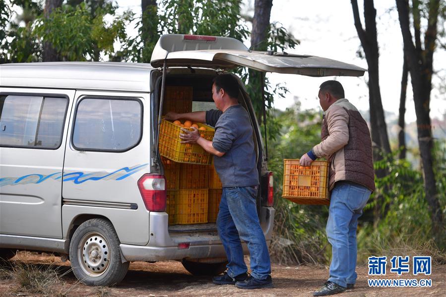 12月9日,廣西柳州市鹿寨縣四排鎮(zhèn)江南村村民將剛剛采收的蜜橙搬上車,準備外銷。新華社記者 黃孝邦 攝