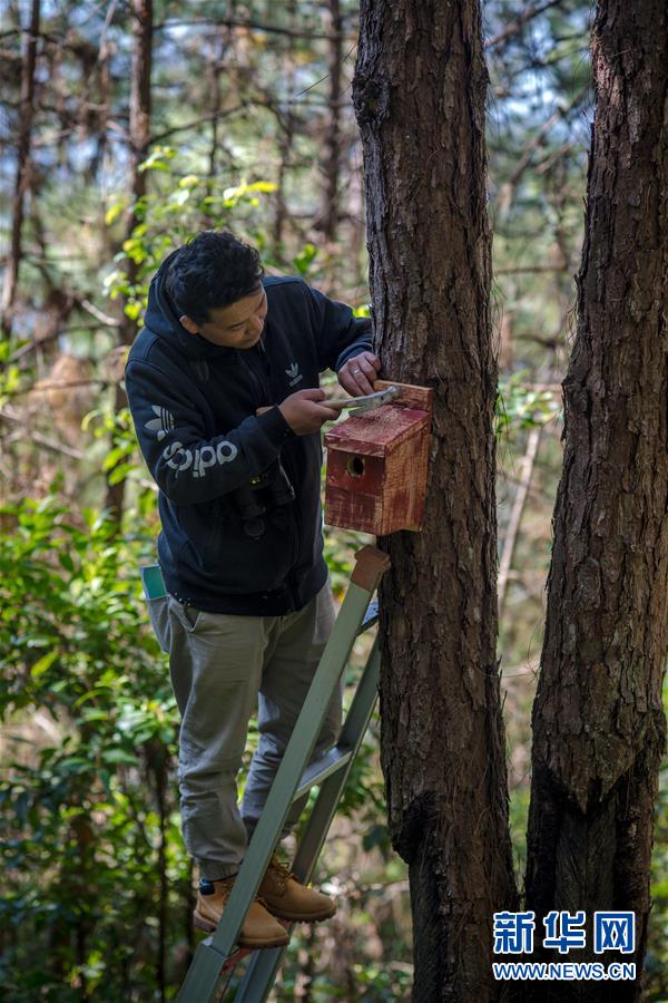 羅康在哀牢山的松樹林里查看上一批人工巢箱的鳥類入住情況(12月12日攝)。 31歲的羅康是云南省瀾滄縣人,從事鳥類生態(tài)學(xué)研究已有8年時(shí)間。作為中科院鳥類繁殖學(xué)的在讀博士,羅康離開城市,一頭扎進(jìn)哀牢山深處,以森林為家,與鳥兒為伴。 羅康在研究過程中發(fā)現(xiàn),由于松林內(nèi)天然樹洞很少,導(dǎo)致食蟲鳥類(主要為洞巢鳥)的繁衍與生存質(zhì)量受到較大影響。查閱大量資料后,他決定學(xué)習(xí)西方國(guó)家應(yīng)用比較廣泛、已有100多年歷史的人工巢箱,為這些鳥兒搭建“別墅”。 目前,羅康已安置人工鳥巢500余個(gè),共有遠(yuǎn)東山雀、綠背山雀、黃頰山雀等7種鳥類入住,總體入住率約25%。他還在部分人工巢箱里裝上攝像頭,用于研究鳥類的生活習(xí)性。 “通過對(duì)人工鳥巢里的視頻錄像進(jìn)行分析,我們發(fā)現(xiàn)入住鳥類以松毛蟲喂食幼鳥的比例非常高?!绷_康表示,安置人工鳥巢不僅能幫助鳥類在森林中安家落戶、繁衍生息,也能有效防治森林病蟲害。明年一月底前,他將再安置500個(gè)人工巢箱。 新華社記者 胡超 攝