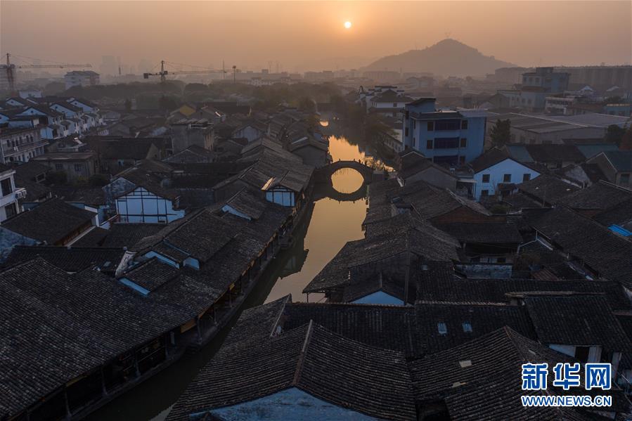 12月12日拍攝的晨曦中的安昌古鎮(zhèn)。新華社記者徐昱攝