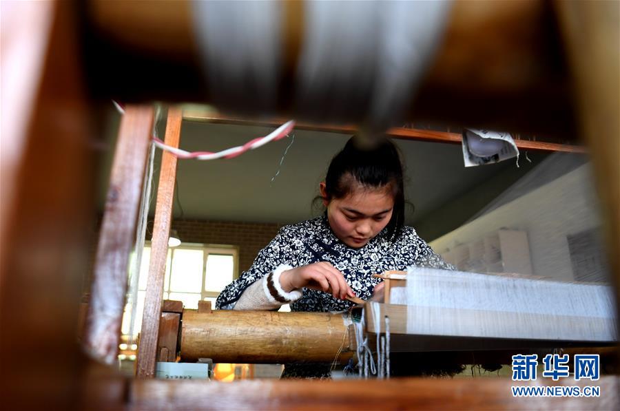 12月14日,在河北定州緙絲傳習基地,工作人員在制作緙絲。 新華社記者 王曉 攝