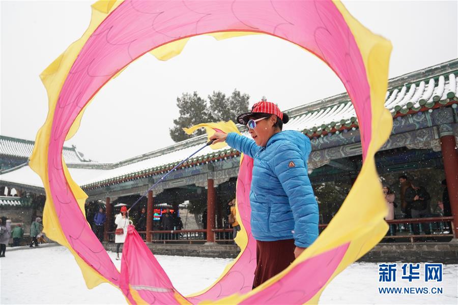 12月16日,在北京天壇公園,一名市民雪中健身。當(dāng)日,北京迎來降雪天氣。新華社記者鞠煥宗攝