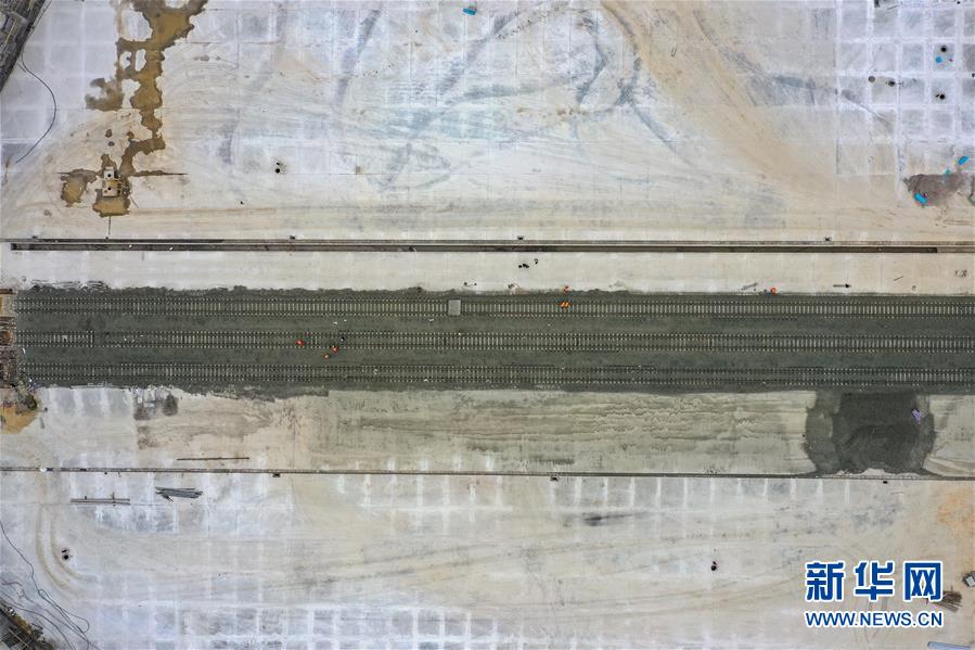 12月17日,中鐵八局建設(shè)者在改貌鐵路口岸施工。 新華社記者 劉續(xù) 攝