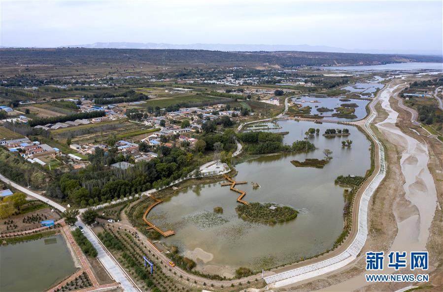 經(jīng)過綜合治理后的茹河成為寧夏固原市彭陽縣的一道新風(fēng)景(10月12日無人機(jī)拍攝)。 新華社記者 馮開華 攝