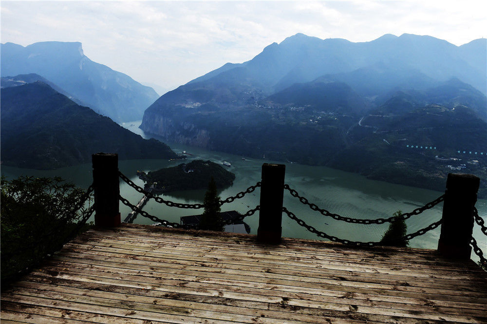 2019年11月3日,重慶,位于魚腹山懸崖、紫陽城遺址的觀景臺。