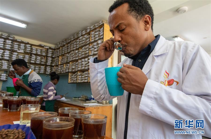 2019年10月23日,在位于埃塞俄比亞首都亞的斯亞貝巴郊外的卡辰什咖啡加工廠內(nèi),卡辰什咖啡質(zhì)量和市場總監(jiān)阿斯納克·卡薩在杯測室參與咖啡的杯測??ǔ绞部Х仁前H肀葋喿畲蟮目Х壬a(chǎn)商和出口商之一??ㄋ_表示,中國市場潛力巨大,埃塞俄比亞咖啡在中國市場的占有率不斷增長,進(jìn)博會對埃塞俄比亞咖啡出口商來說是一個很好的機會。 新華社記者 張宇 攝