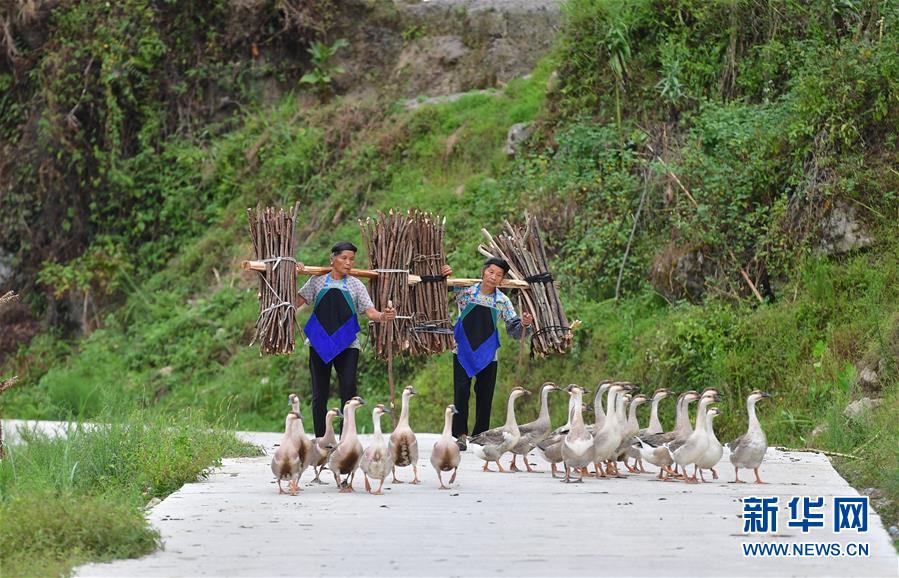 烏英苗寨秋收歸來的人們(9月2日攝)。新華社記者黃孝邦攝