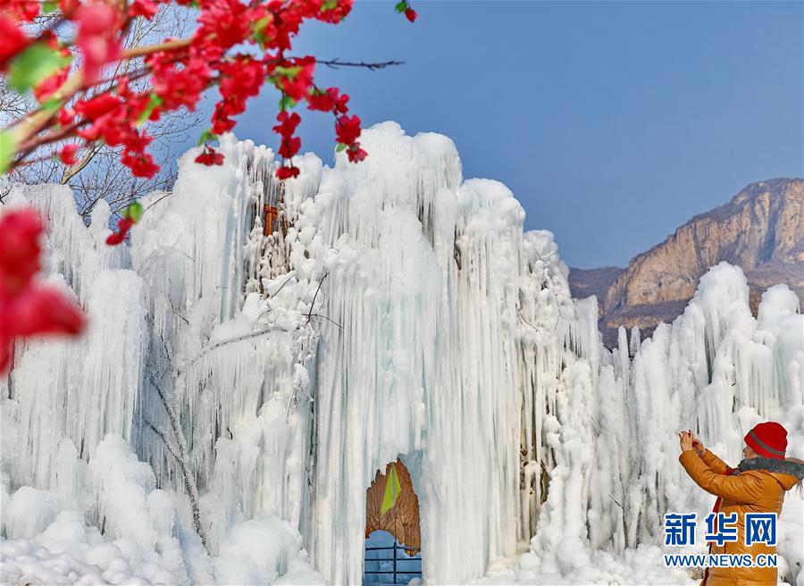 1月9日,游客在云臺山景區(qū)觀賞冰瀑景觀。近日,受降溫影響,位于河南省焦作市的云臺山景區(qū)出現(xiàn)冰瀑景觀,奇特壯美。新華社記者馮大鵬攝
