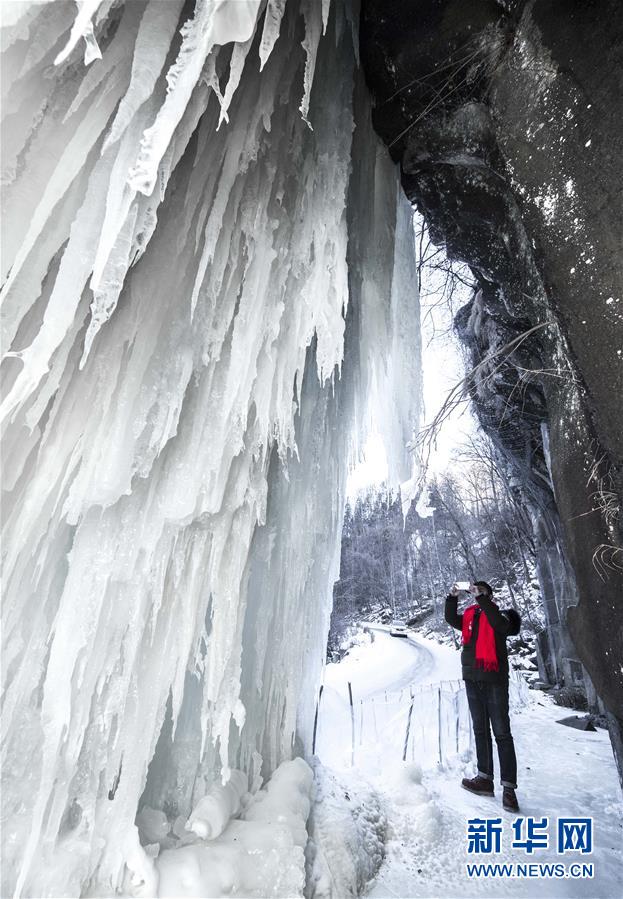 1月9日,游客在云臺山景區(qū)拍攝冰瀑景觀。近日,受降溫影響,位于河南省焦作市的云臺山景區(qū)出現(xiàn)冰瀑景觀,奇特壯美。新華社記者馮大鵬攝