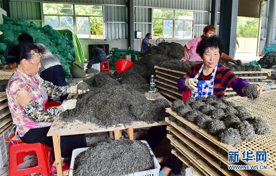 8月22日,在福安市溪邳村的海產(chǎn)品加工廠,村民對海帶進(jìn)行粗加工。新華社記者林善傳攝