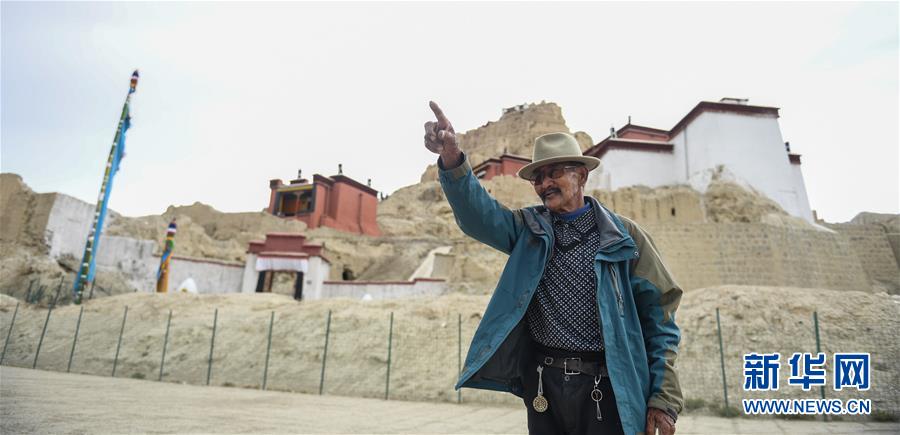 達瓦次仁在古格遺址前(7月30日攝)。新華社記者晉美多吉攝