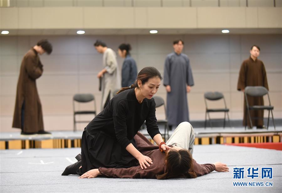 12月26日,在話劇《二月》中飾演陶嵐的演員盧芳(前左)在排練。 新華社記者 羅曉光 攝