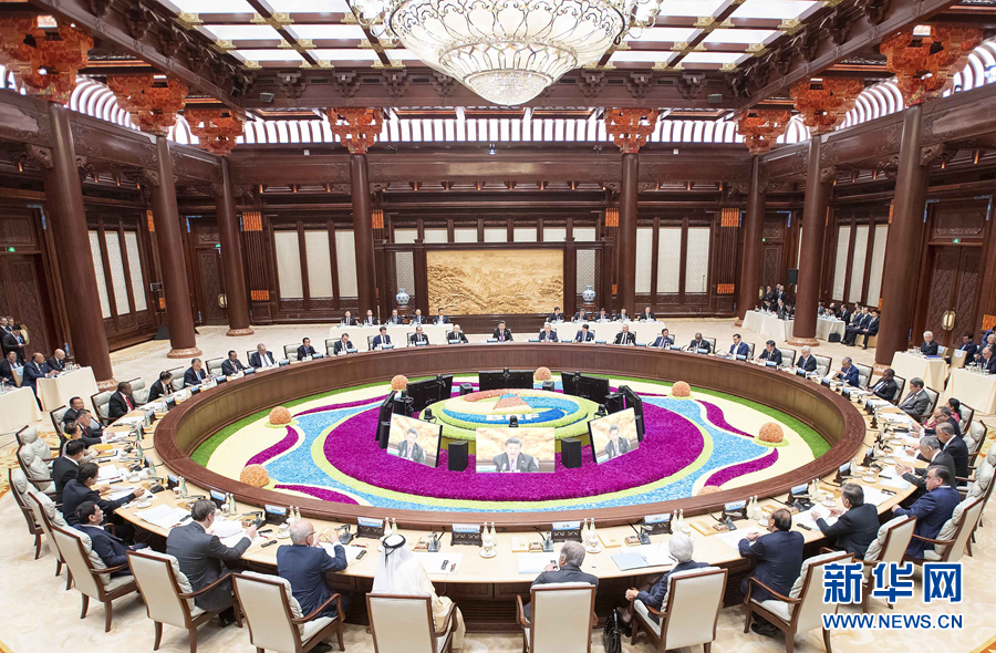 這是4月27日,第二屆“一帶一路”國際合作高峰論壇在北京雁棲湖國際會(huì)議中心舉行圓桌峰會(huì),國家主席習(xí)近平主持會(huì)議并致開幕辭。 新華社記者 李濤 攝