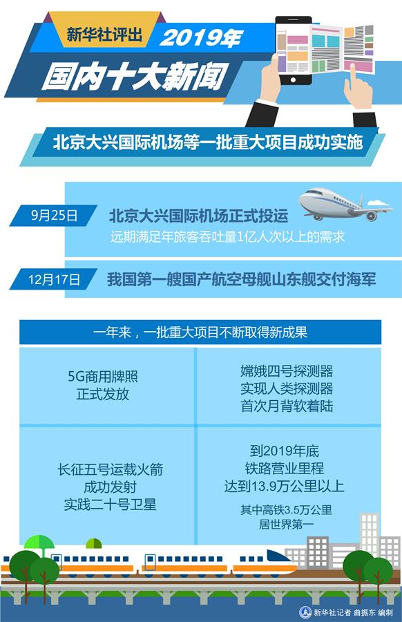 圖表:新華社評(píng)出2019年國內(nèi)十大新聞 新華社記者 曲振東 編制