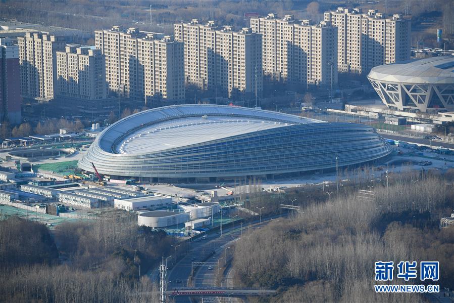 這是12月31日拍攝的實現(xiàn)封頂封圍的國家速滑館。新華社記者鞠煥宗攝