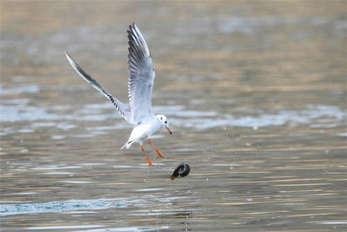 2019年3月17日,水鳥在山西省太原市汾河濕地公園覓食。新華社記者楊晨光攝