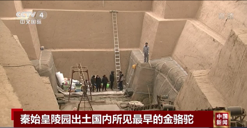 近日,秦始皇帝陵博物院公布最新考古成果:考古人員在秦陵在秦陵外城西側(cè)的陵區(qū),對一座編號為一號墓葬(QLCM1)的“中字形”墓葬進(jìn)行了發(fā)掘,取得重要收獲。該墓為目前發(fā)現(xiàn)秦代規(guī)模最大、等級最高、保存最完好的大型墓葬,填補(bǔ)了秦代高等級墓葬的空白。出土了目前國內(nèi)所見最早的單體金駱駝。