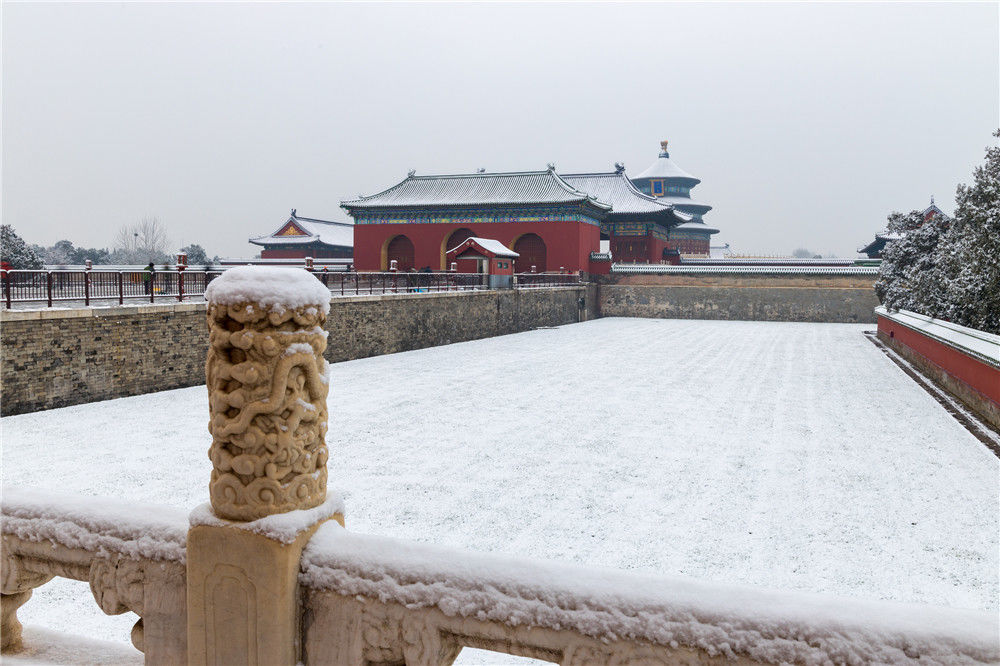 2019年11月30日,北京,初雪過后,天壇公園銀裝素裹,白雪古建相互映襯,景色迷人。劉高攀/視覺中國