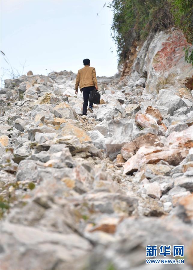 八好村駐村第一書記韋德王徒步前往群眾家中,開展扶貧工作(2019年12月16日攝)。新華社記者黃孝邦攝