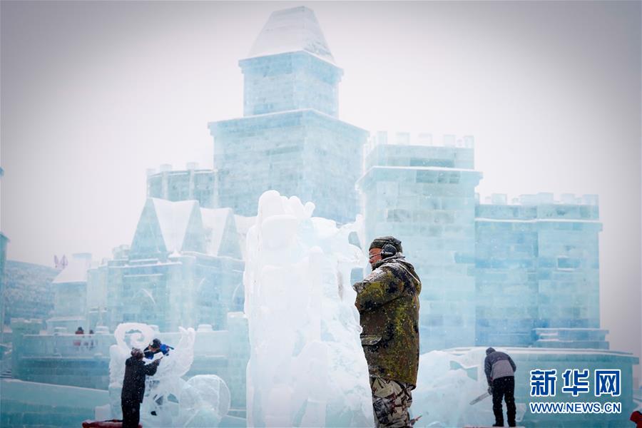 1月7日,參賽者在進行冰雕創(chuàng)作。新華社記者王松攝