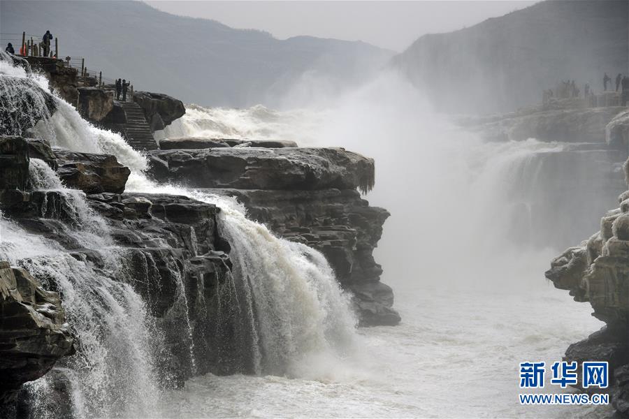 12月14日,游人在壺口瀑布景區(qū)游玩。新華社記者陶明攝