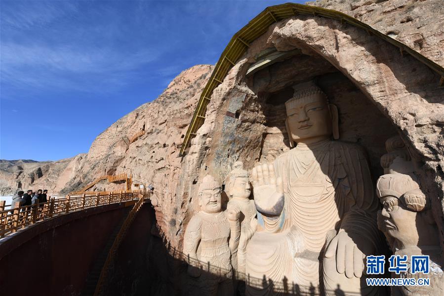 1月11日,游客在參觀天梯山石窟13號(hào)窟。新華社記者馬寧攝